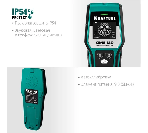 Универсальный детектор Kraftool GMS 120 45298 помогает обнаруживать скрытые конструкции, расположенные глубоко в стене. Благодаря соблюдению высоких стандартов качества обеспечивает надежную работу на протяжении всего срока службы. Модель отличается высокой точностью. Графический дисплей обеспечивает легкое считывание данных. Прочный корпус устойчив к механическим повреждениям. Технические характеристики KRAFTOOL GMS 120 45298 Поверка нет Внесен в госреестр нет Элементы питания крона(6LR61;6F22;6KR61) Количество и напряжение элементов питания 1х9B Обнаруживаемые материалы черные и цветные металлы/проводка/дерево Max глубина обнаружения древесины 20 мм Max глубина обнаружения проводки 50 мм Max глубина обнаружения цветных металлов 80 мм Max глубина обнаружения черных металлов 120 мм Глубина обнаружения 120 мм Вес нетто 0.344 кг Преимущества KRAFTOOL GMS 120 45298 Простота эксплуатации Автоматическая калибровка Звуковая, графическая и цифровая индикация Автоотключение при бездействии для экономии заряда батареи Мягкий чехол для удобства хранения и транспортировки Kraftool GMS 120 45298