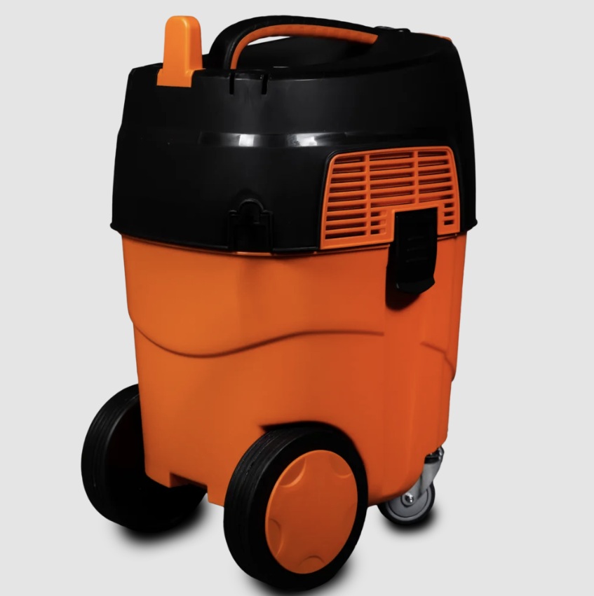 Предназначен для удаления сухой негорючей пыли класса L – отходов строительных материалов и влажной уборки. Совместим со шлифмашинами ASPRO и поддерживает синхронное включение с ними. Шлифмашины мощностью до 2000 Вт можно подключать к пылесосу – на корпусе есть специальная розетка. Глубина вакуума составляет 19 кПа. Оборудован системой автоматической очистки фильтра и объемным баком на 30 л. Устойчив, легко перемещается по строительной площадке.