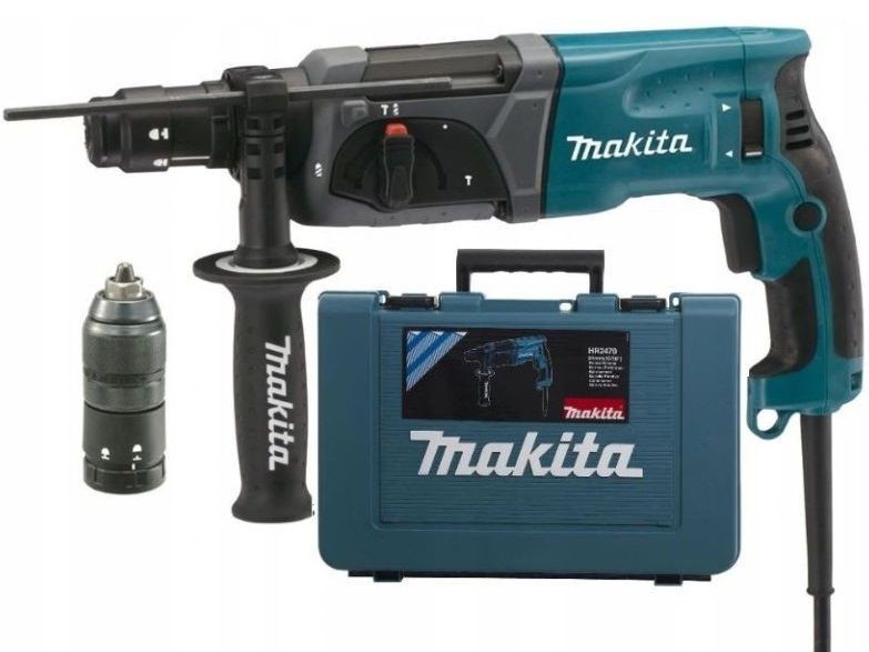 Производительный инструмент для сложных профессиональных задач – это про перфоратор Makita HR2470. С ним вы сможете выполнять сверление, ударное бурение и долбление. Без проблем пробурите в бетоне отверстие до 24 мм – с буром и до 54 мм – с коронкой. Скорость не падает даже при обратном вращении – перфоратор оснащен реверсом для легкого извлечения застрявшей оснастки. Перфоратор Makita HR 2470 имеет двойную защитную изоляцию. Он может работать как отбойный молоток и как дрель. При обратном вращении (реверс), двигатель работает с той же скоростью и крутящим моментом.